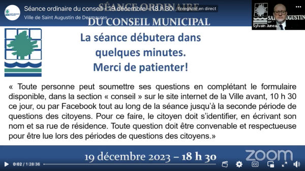 Séance ordinaire du Conseil MunicipalMardi 16 janvier 2024 à 18h30au CNDF - Pavillon André-Coindre