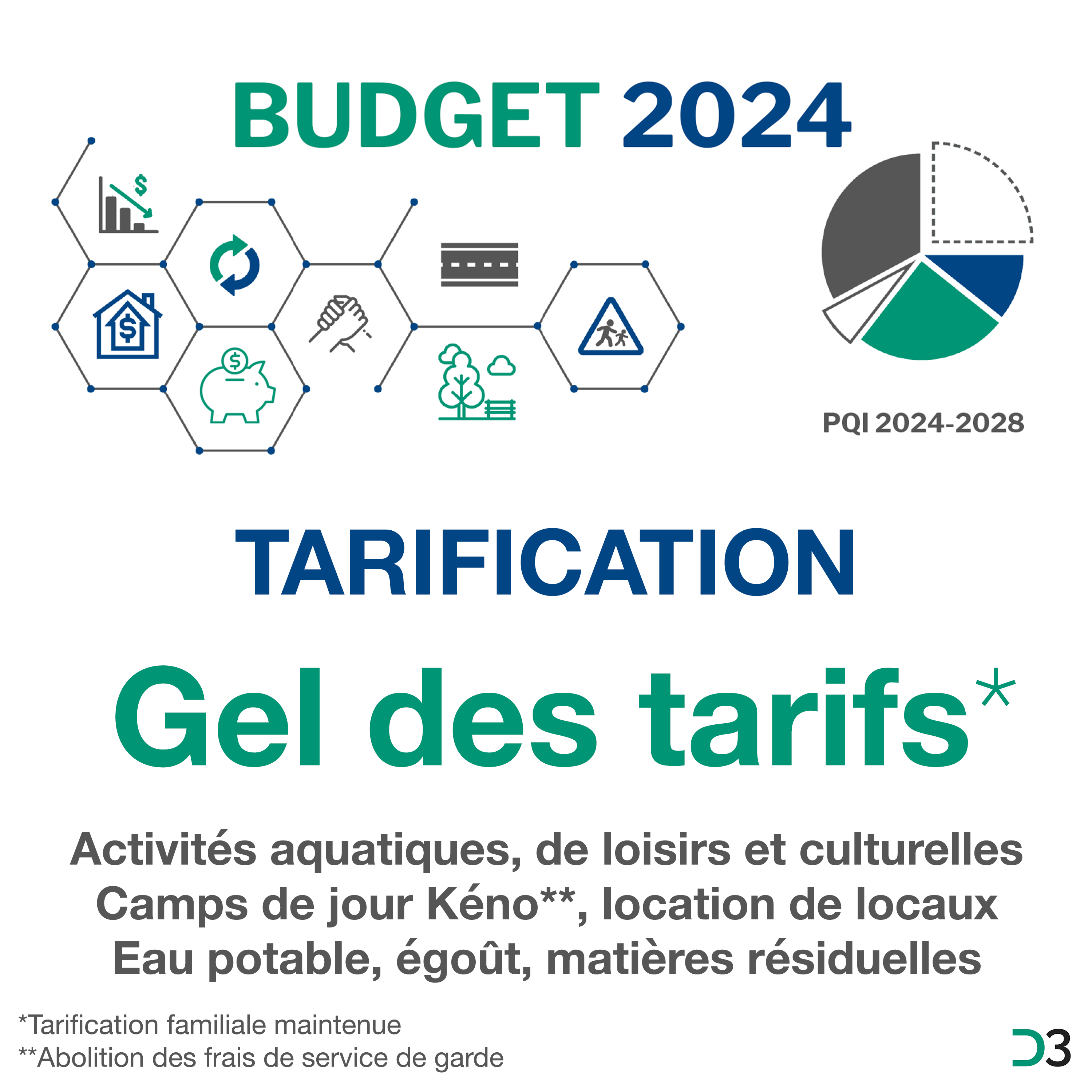 À Saint-Augustin-de-Desmaures, les parents défraient environ 30% des coûts du programme et la ville assume +/- 70% des coûts. Les tarifs sont gelés aux taux de 2019. Le coût du service de base est de 70$/semaine par enfant (1er et 2e enfant). Le coût est de 35$/semaine pour le 3e enfant et c’est gratuit pour le 4e enfant et les suivants.