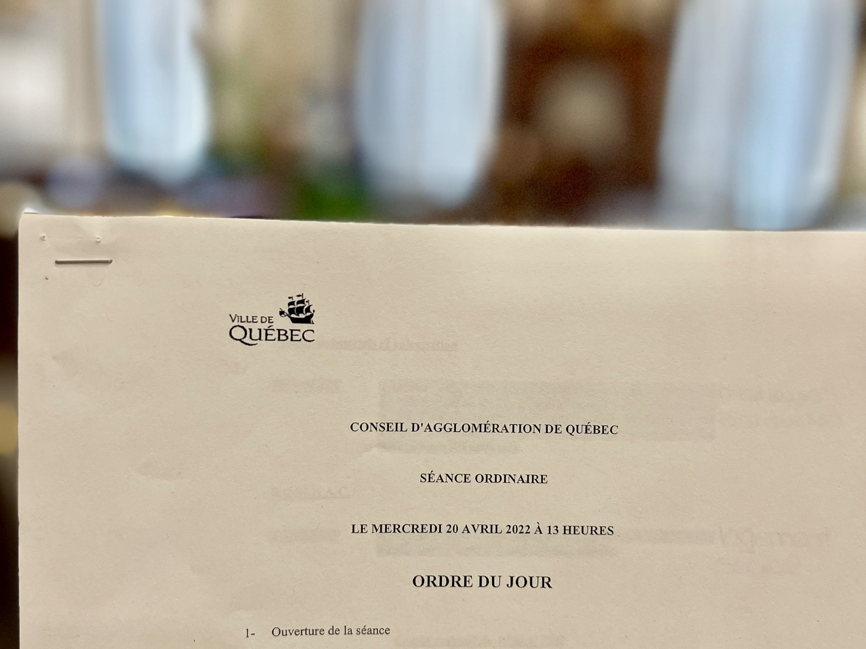 Et c’était aussi ma première présence à l’impressionnante salle du Conseil de la Ville de Québec.