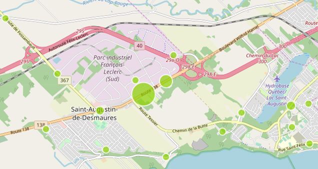 Cette portion de la 138 se trouve à être la zone la plus accidentogène de notre territoire. La capture d’écran ci-dessus indique les endroits (cercles verts) où l’on dénombrait le plus d’accidents avec blessés en 2018 (données de la SAAQ et du SPVQ).